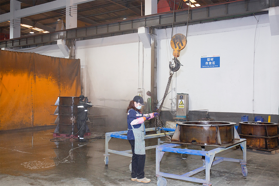 وفي الوقت نفسه، يتم إجراء فحص دقيق على الأجزاء التي تمت معالجتها عن طريق القطع والثني والتصنيع وغيرها من العمليات للتأكد من أن تفاوتات الأبعاد وتفاوتات الشكل والموضع تلبي متطلبات التجميع. تمتلك شركة Jiaxing Dingshi Machinery Manufacturing Co., Ltd معدات عالية الدقة مثل آلات قطع الألواح بالليزر بقدرة 30 كيلووات، ومراكز المعالجة العملاقة بطول 4 أمتار و6 أمتار، وما إلى ذلك، والتي يمكنها ضمان دقة تصنيع المكونات ووضع الأساس للتجميع الدقيق للعقد. إذا كان هناك انحراف في الأبعاد في المكونات، فقد يسبب ذلك تركيز الإجهاد أثناء التجميع، مما يؤثر بدوره على استقرار العقد.